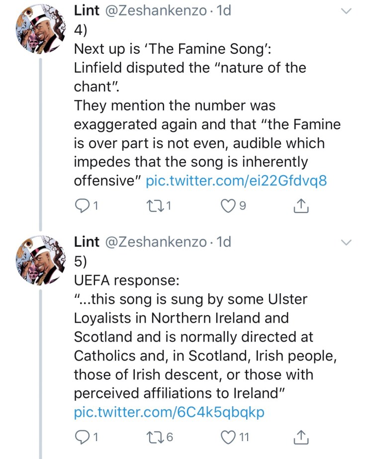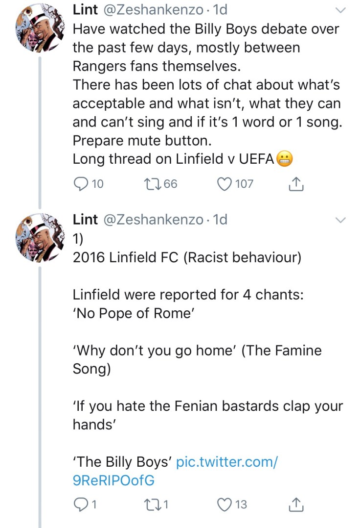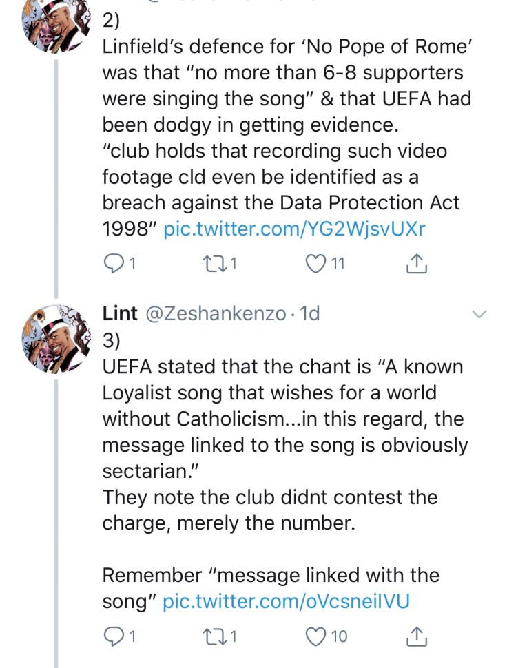 - That UEFA will likely treat any ‘discriminatory’ behaviour similarly regardless of whether its styled as ‘sectarianism’, ‘racism’ or other;