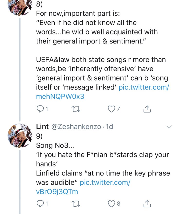 …(I)n Scotland, references to “Fenian Bastards” are not only derogatory, but also unlawful and could lead to criminal proceedings. For UEFA and the Appeals Body in particular, this proves that a large number of people perceive this expression as offensive and that its use at football matches should therefore be considered an offence and punished accordingly.