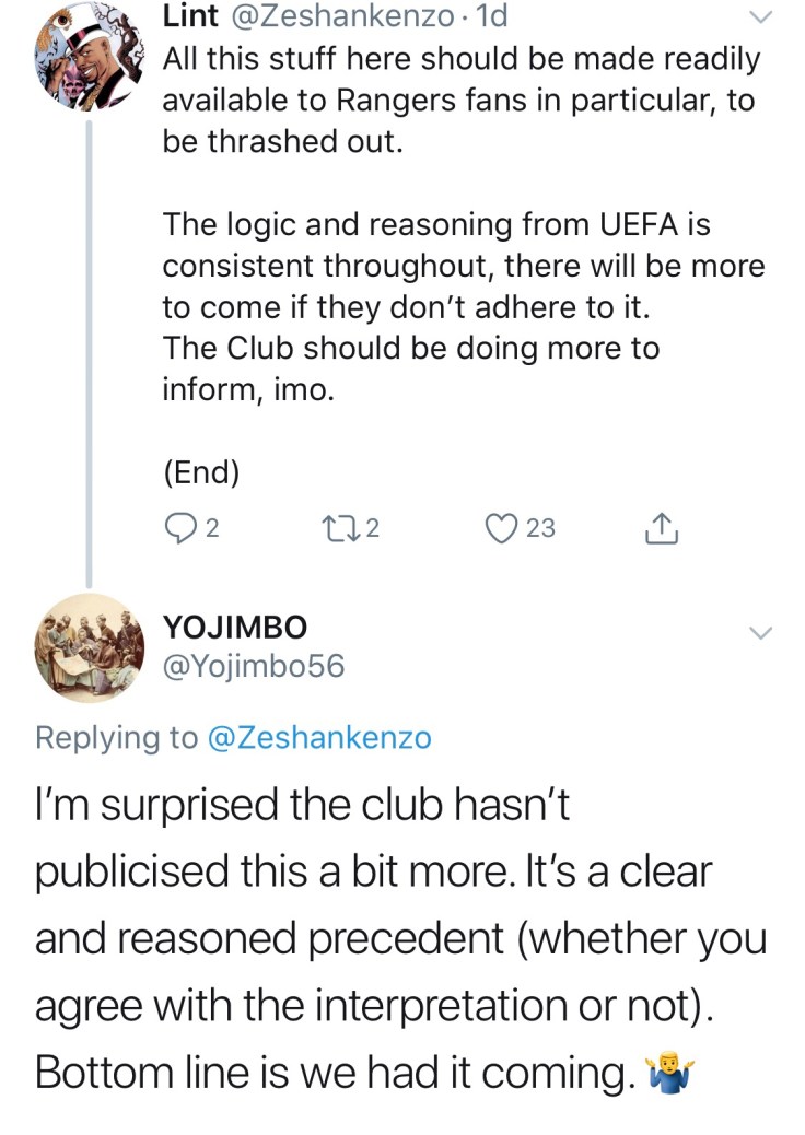 During Rangers inactivity in European competition, this particular line of thought was tested in UEFA’s case law regarding Ajax.
